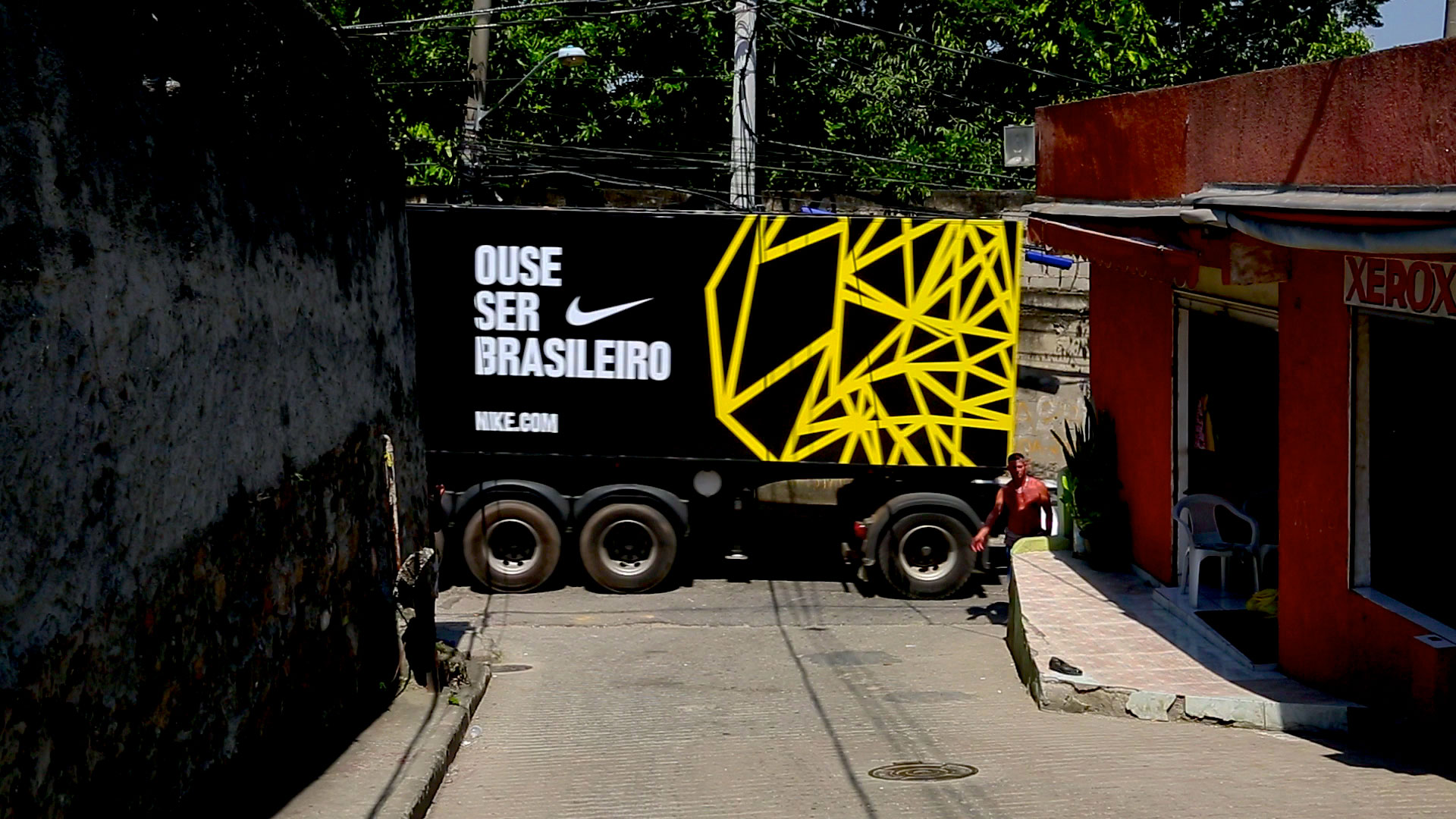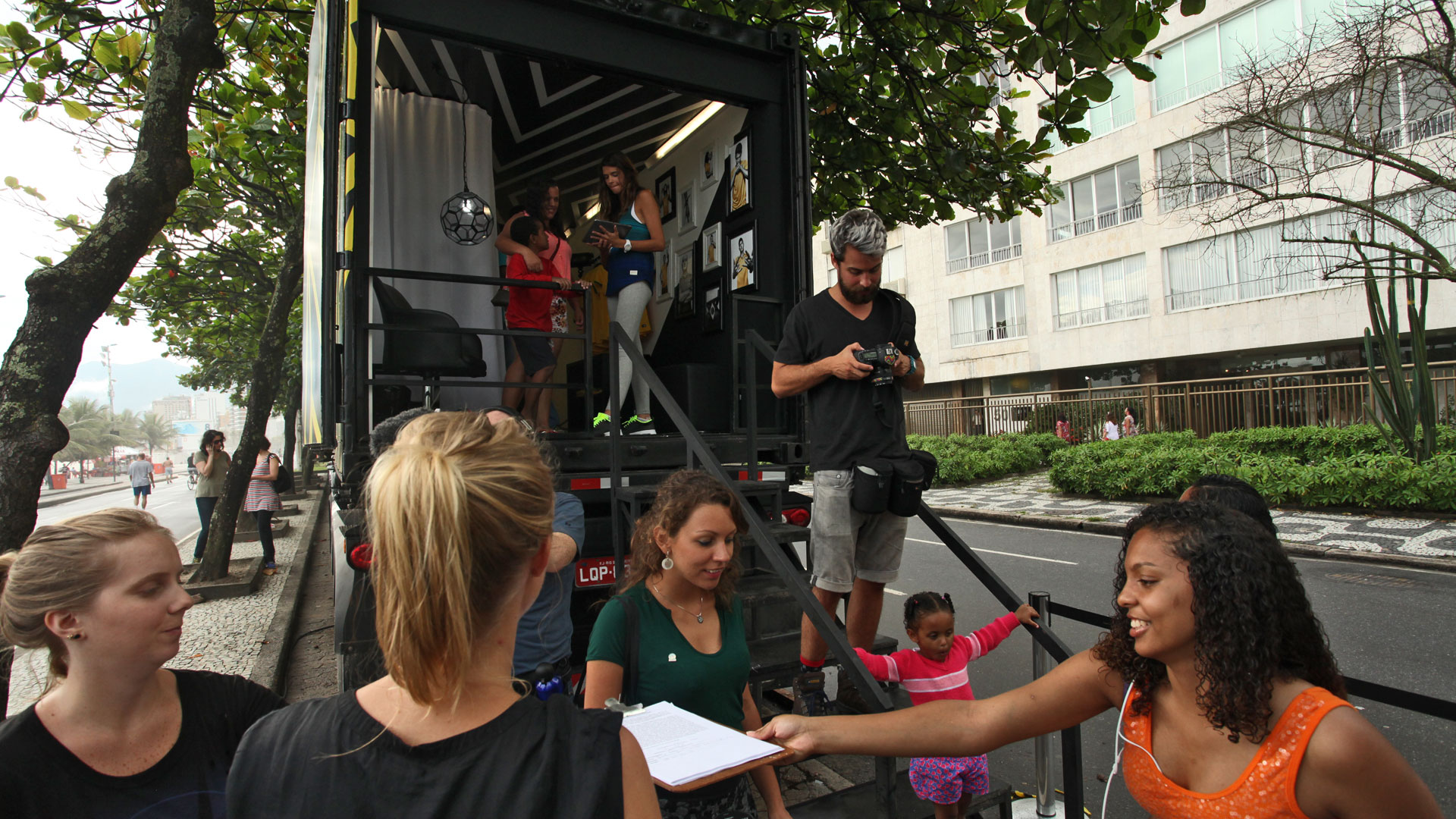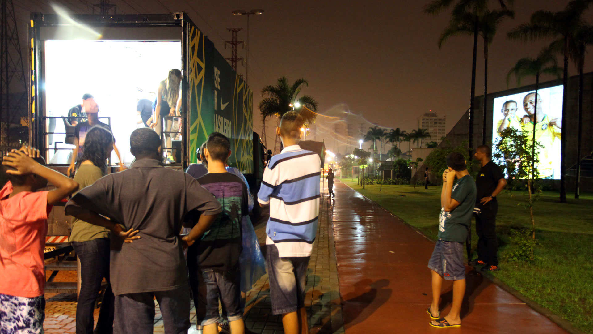 A custom projection ‘bombing’ truck, with a professional photo studio inside, drove around Rio and São Paulo for two weeks, stopping at locations ranging from Ipanema Beach to Madureira. The campaign “Ouse Ser Brasileiro” (Dare to be Brazilian) stimulated fans to show off their support for the national team with the bragging rights of wearing the yet to be released jersey. The moment was registered by being photographed by a professional photographer and posting the image to their social network. The photos, taken by guest photographer Jorge Bispo, were also projected in real-time onto the buildings close to the truck, making the visitor the star of the show.